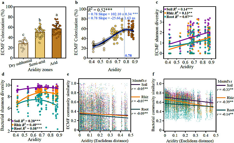 Recently, based on the research of Professor Li Xiaogang of Academician Cao Fuliang’s team, a paper entitled " Mycorrhizal colonization of dryland tree establishment depends on soil microbial cooperation” has been published in the top international journal ‘Nature Communications’ (https://doi.org/10.1111/pbi.70488). NJFU was the first completion unit. Zi Haiyun, a PhD candidate of Ecology was the first author. Professor Li Xiaogang was the corresponding author. This research was funded by the Key Project of the National Natural Science Foundation of China, the International Cooperation Project, and the Jiangsu Province Carbon Peak and Carbon Neutrality Technology Innovation Special Fund.