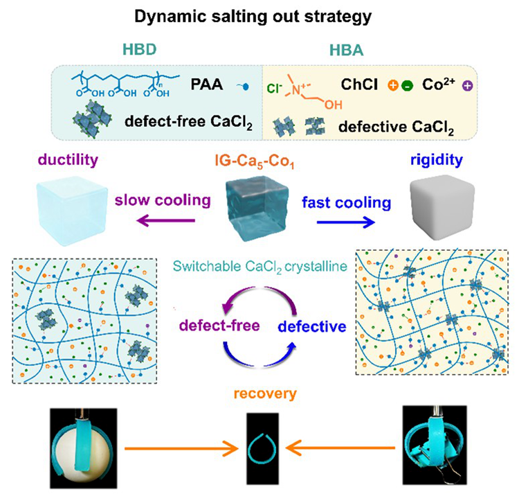 Recently, Professor Zhou Xiaoyan's team from the College of Materials Science and Engineering at our university published a research paper titled "Mechanically Programmable Ionigels through a Dynamic Salting Out Strategy" in the internationally renowned journal "Advanced Materials" (Impact Factor: 26.8) in the field of materials https://doi.org/10.1002/adma.202523597 ). Our university is the only completion unit, and Zhang Guohang, a master's student from the School of Materials Science and Engineering, is the first author of the paper. Associate Professor Chen Minzhi and team leader Professor Zhou Xiaoyan are the co corresponding authors of the paper. This research work was funded by the National Natural Science Foundation of China.