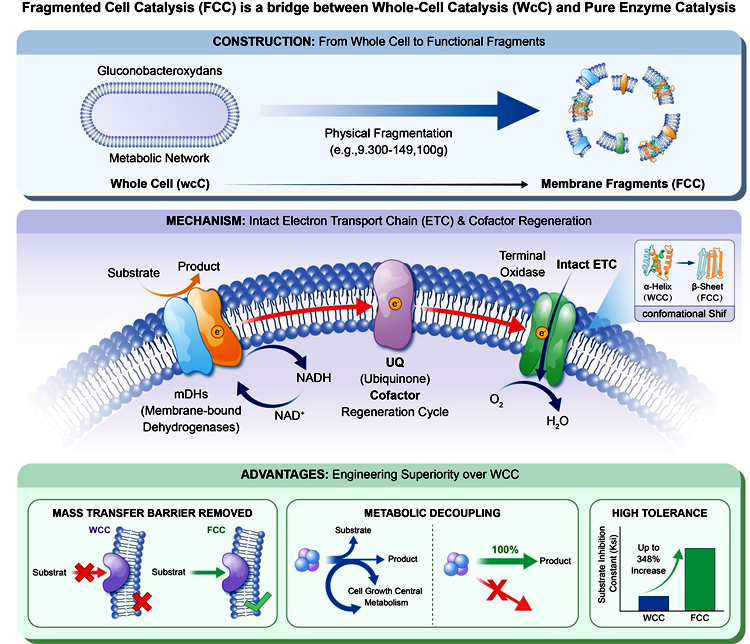 Recently, the research team of the National Key Laboratory of Forest Food Resource Mining and Utilization at our university published a research paper titled "Harnessing fragmented cells as biocatalysts: The critical size for sustaining the integrity of the electron transport chain" in the top international journal in the field of chemical engineering, AIChE Journal (Journal of the American Institute of Chemical Engineers) https://doi.org/10.1002/aic.70281 ). Our school is the first completion unit, with Huaxia, a young teacher from the School of Chemical Engineering, as the first author and Professor Xu Yong as the corresponding author. This research work was supported by the National Natural Science Foundation of China (22408174, 32571999) and the National Key Laboratory of Forest Food Resource Mining and Utilization.